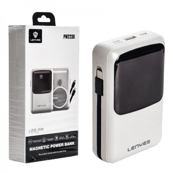 یک پورت USB-A و یک پورت تایپ سی (USB-C) و یک پورت لایتنینگ | شارژ مگنتی | خروجی وایرلس 15 وات | خروجی 22.5 وات | دو کابل همراه آیفون و تایپ سی | گارانتی 6 ماه تست: 5